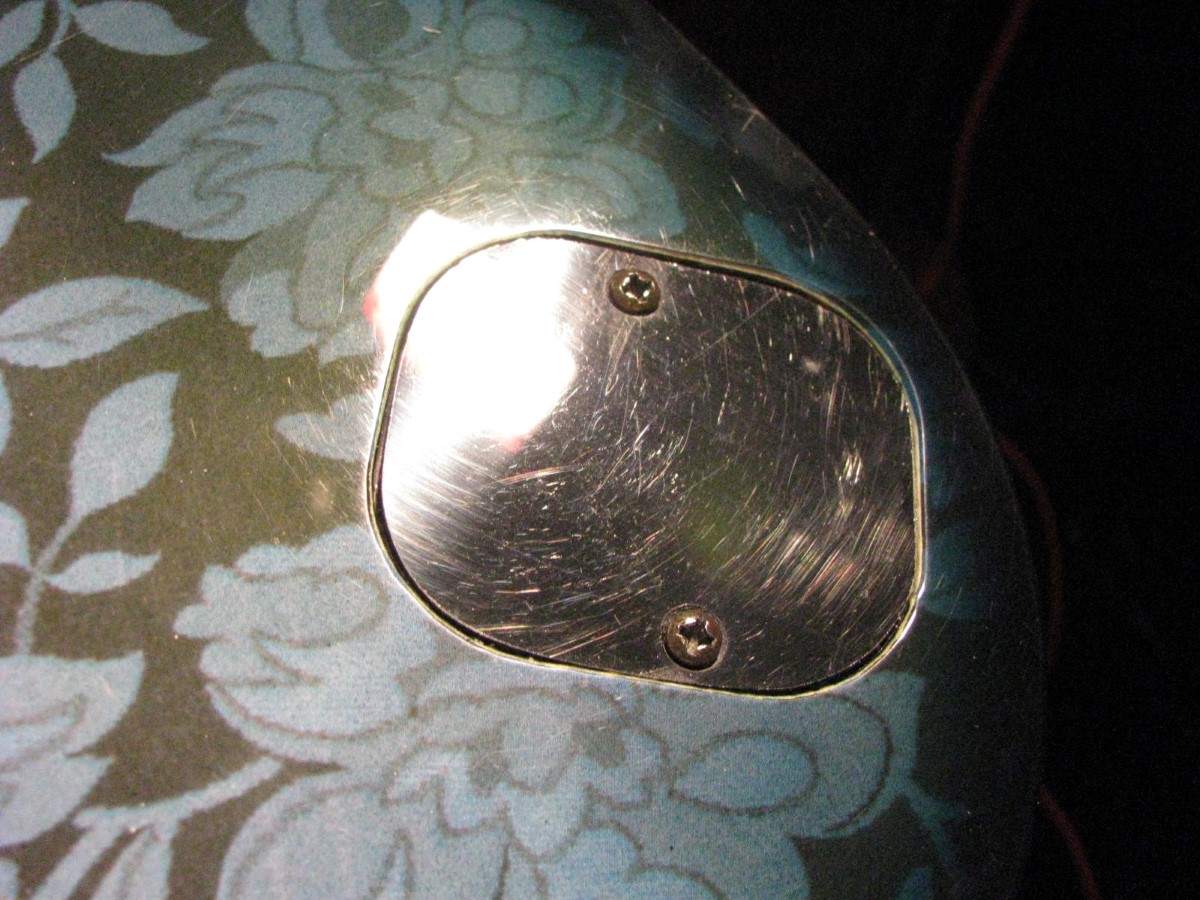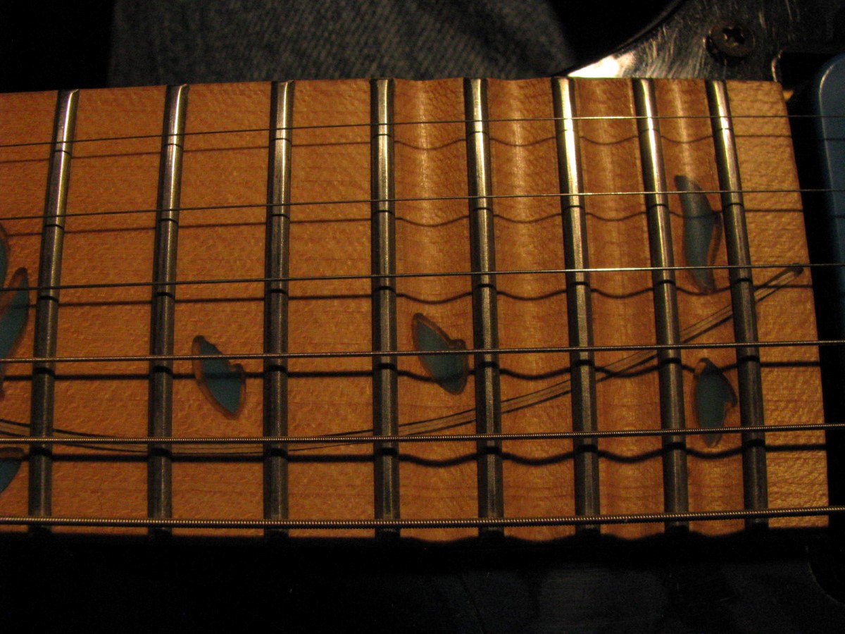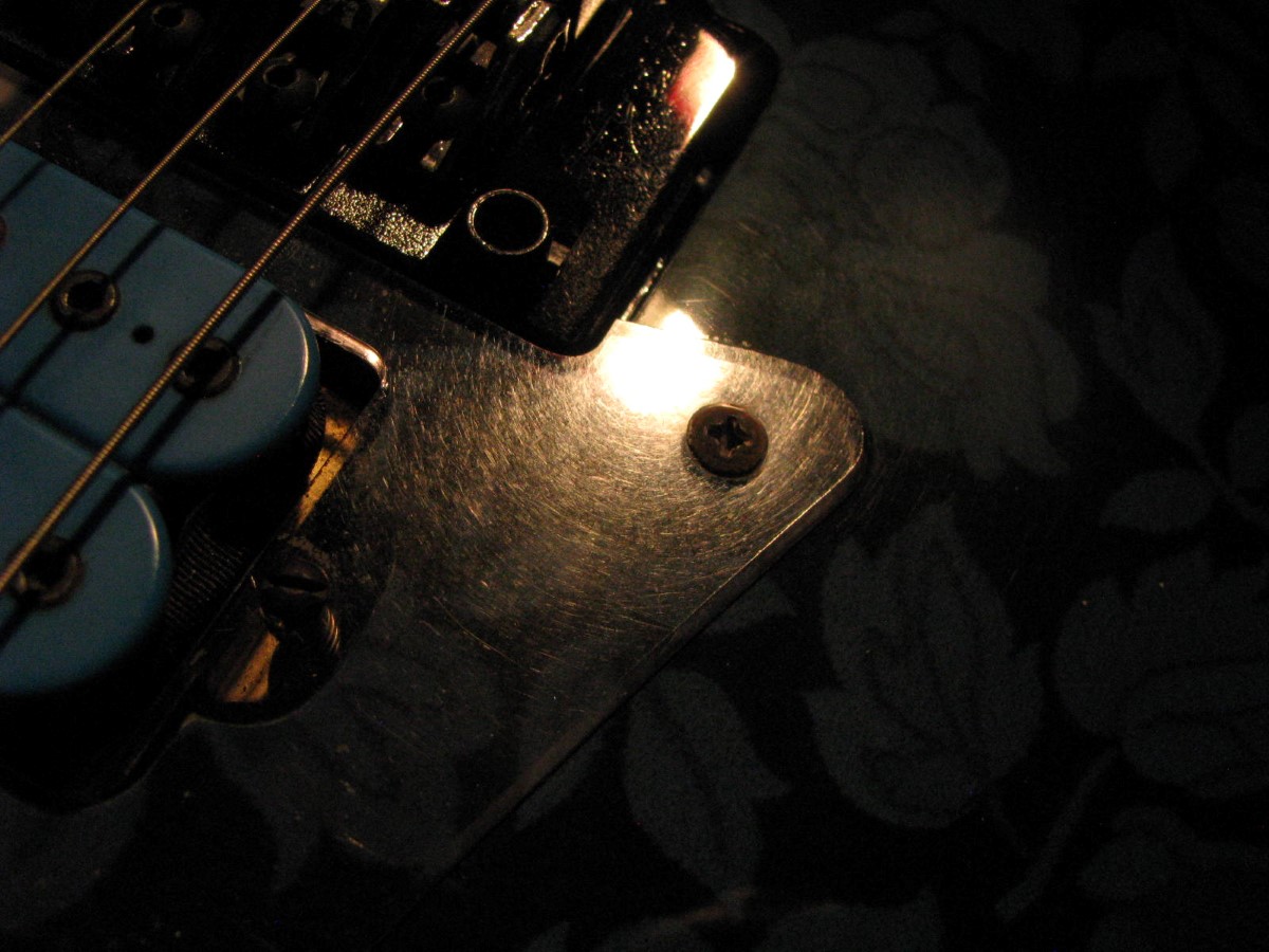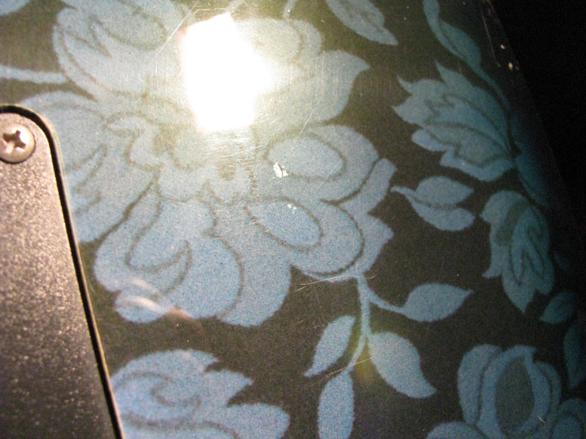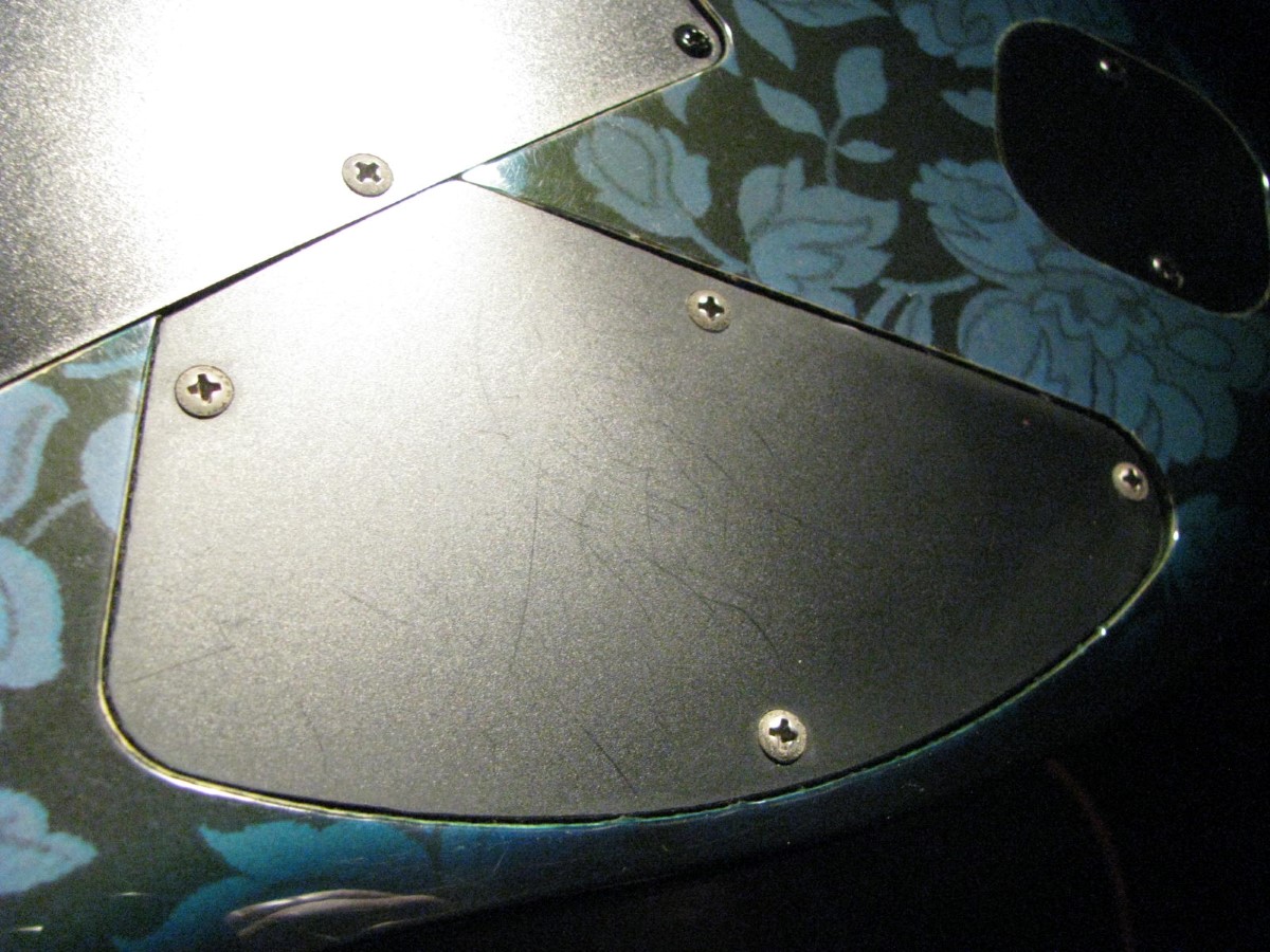 JEM77BFP - EXC, This BFP is rare in that it's still very much blue as the clear hasn't yellowed, which has given most of these green hues. It has been played so is showing lighter pick and fingernail scratching to the pickguard and wear to the top edge of the volume knob, the painted blue wearing thru to the white knob underneath which is common on played BFP's. There is a fine scratch cloudy area on the top trem corner of the pickguard and into the paint above probably from a bracelet, none of the scratching is deel and all very fine. There is a ding on the front bottom edge, and the bottom side has several scratches and finish cracks, with a scuff on the top front side edge at the arm contour. There are a few small fog spots in the middle of the back and several small marks and scratches scattered. The jack cover is a non original replacement and is like the trem cover from the DY, which probably actually goes on this guitar. The trem has some fine pimpling to the baseplate and a little cosmo wear off the high points of the low E saddle and small spot corrosion to the tops of the rest, the neck plate with crusty white corrosion and about 25% original finish. There is a little dirt in the fretboard and it has very mild and even fretwear. The headstock is very clean. The back of the neck has been cleaned and clearcoated and all the orange peel wetsanded down and polished, probably to somebody's preference, and is super slick as it is. It does have an S shape neck bass side so it will need a deep fret level to make this guitar into a good playing guitar. It's in a basically brand new 2000's burgundy lined UV1000 case with bar only.**$2200** **REDUCED!! $1850**