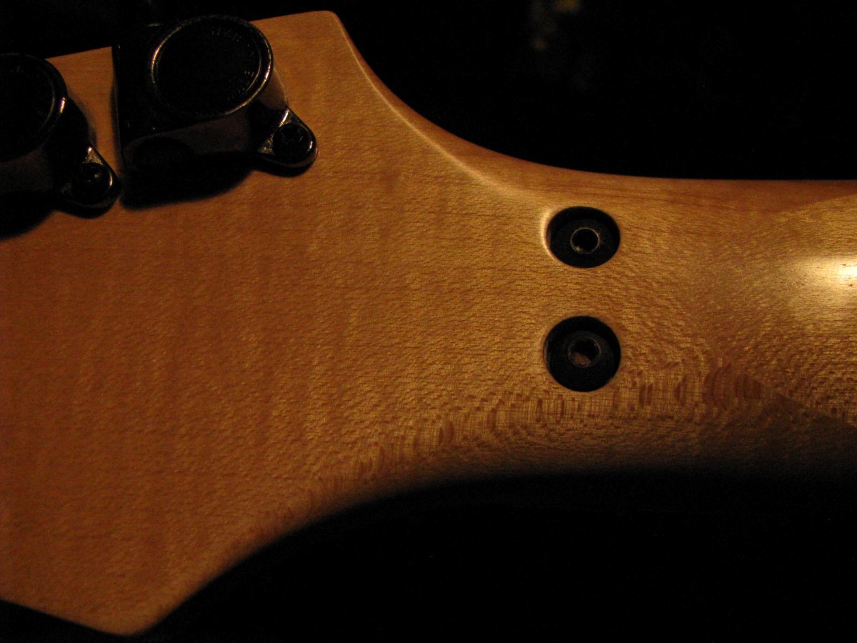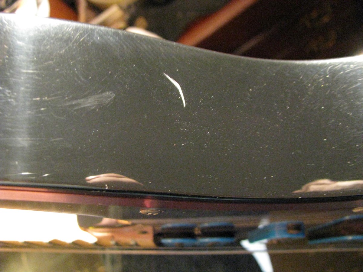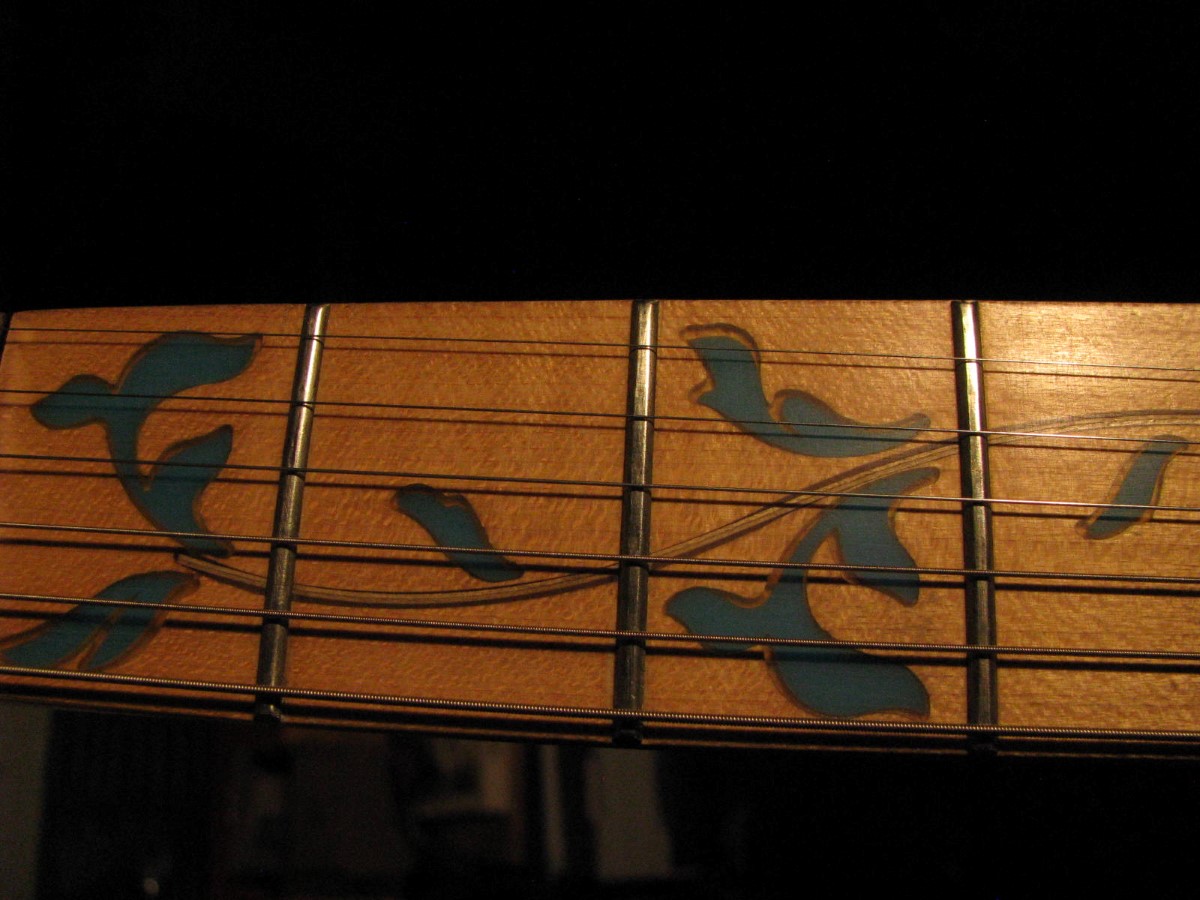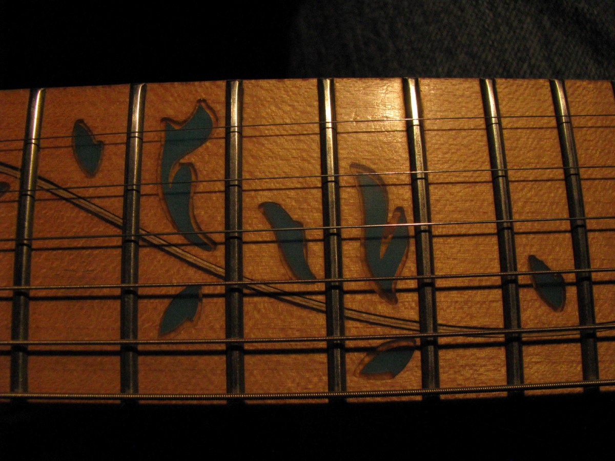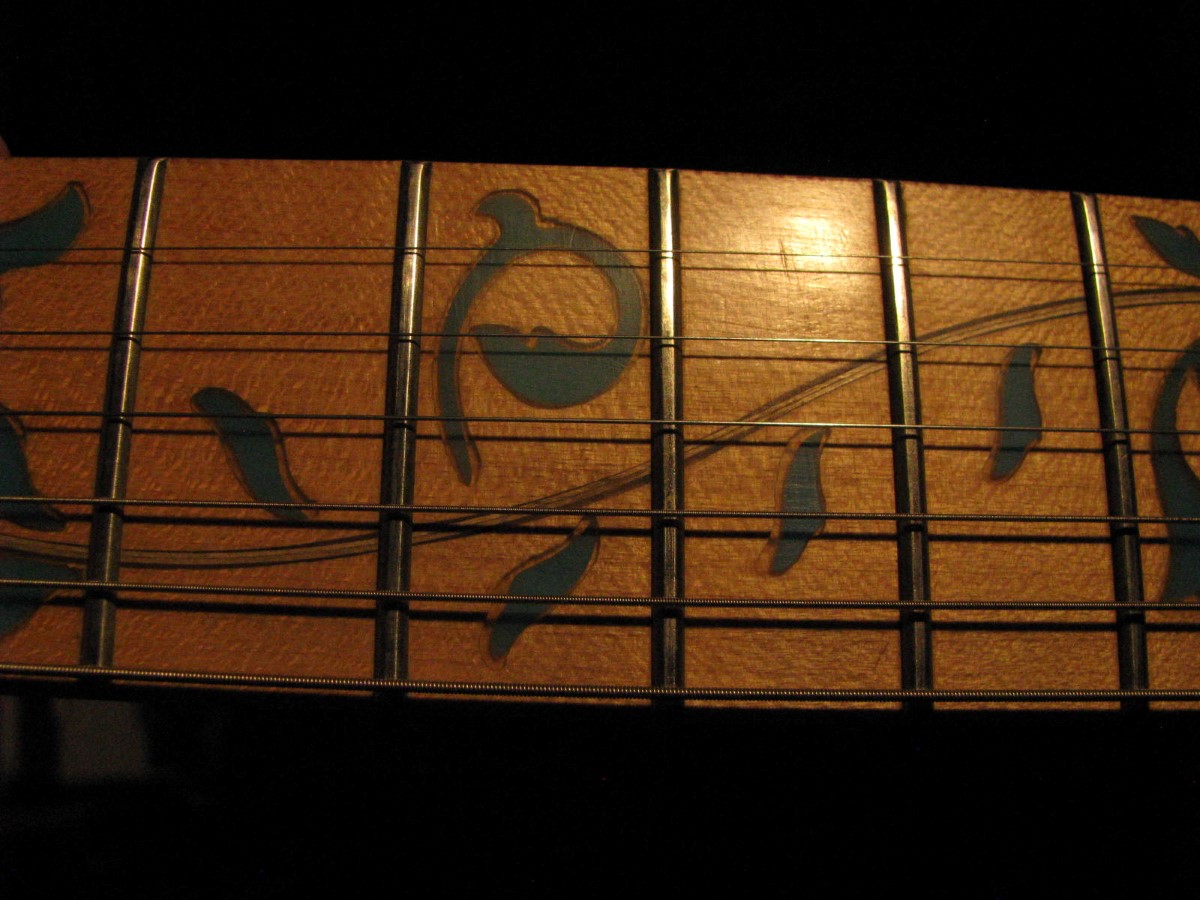 JEM77BFP - EXC, This BFP is rare in that it's still very much blue as the clear hasn't yellowed, which has given most of these green hues. It has been played so is showing lighter pick and fingernail scratching to the pickguard and wear to the top edge of the volume knob, the painted blue wearing thru to the white knob underneath which is common on played BFP's. There is a fine scratch cloudy area on the top trem corner of the pickguard and into the paint above probably from a bracelet, none of the scratching is deel and all very fine. There is a ding on the front bottom edge, and the bottom side has several scratches and finish cracks, with a scuff on the top front side edge at the arm contour. There are a few small fog spots in the middle of the back and several small marks and scratches scattered. The jack cover is a non original replacement and is like the trem cover from the DY, which probably actually goes on this guitar. The trem has some fine pimpling to the baseplate and a little cosmo wear off the high points of the low E saddle and small spot corrosion to the tops of the rest, the neck plate with crusty white corrosion and about 25% original finish. There is a little dirt in the fretboard and it has very mild and even fretwear. The headstock is very clean. The back of the neck has been cleaned and clearcoated and all the orange peel wetsanded down and polished, probably to somebody's preference, and is super slick as it is. It does have an S shape neck bass side so it will need a deep fret level to make this guitar into a good playing guitar. It's in a basically brand new 2000's burgundy lined UV1000 case with bar only.**$2200** **REDUCED!! $1850**