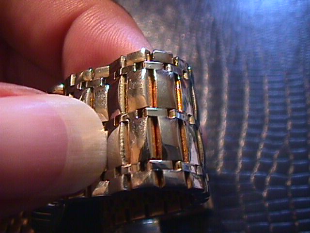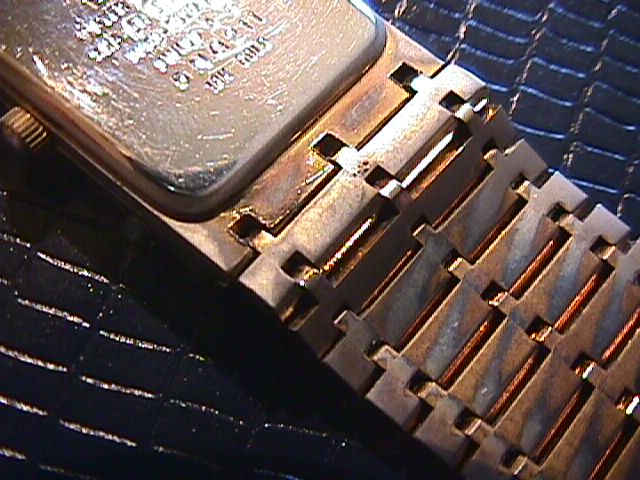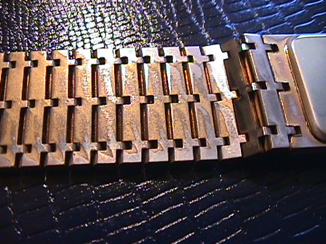 This is a Bulova watch which closed at $210.49. ebay auction #4905453570 ************************************************************** Item description - MEN'S 18K GOLD BULOVA WATCH-NICE! THIS IS A NICE OLDER MEN'S WATCH. IT HAS 18K GOLD ON THE BACK & # 5NQ211, ALSO SAYS SWISS ON IT. IT HAS 4 STONES, POSSIBLY DIAMONDS, BUT I DON'T KNOW FOR SURE. IT ALSO HAS A NEW BATTERY. BUYER PAYS SHIPPING AND HANDLING, COST DEPENDS ON ZIP CODE. I USUALLY SHIP UPS. THIS ITEM IS USED & SOLD "AS IS". NO REFUNDS. I ACCEPT PAYPAL, MONEY ORDERS/CASHIERS CHECKS. PERSONAL CHECKS MUST CLEAR PRIOR TO SHIPPING(5-7 BUSINESS DAYS AFTER RECEIPT). THANKS FOR LOOKING. EMAIL ME WITH ANY QUESTIONS. [Her pictures from the auction] ********************************************************************* The title claims it is 18K Gold, the description states it has 18K Gold on the back. This watch is absolutely not 18K Gold, not even 1K Gold. It is a plated watch and the plating is not gold either. The stainless back has either had the 18K stamp added or most likely it's the back from another watch. The plating has been completely buffed off the front of the watch and band so it "shows" better in pictures but the back clearly shows what it is. Here are a series of pictures that clearly show what it is [and isn't] The back of the band clearly shows the worn plating down to the base metal You can clearly see the plate worn to base metal on the watch case also The front of the case and band have had all of the plate buffed off. You will never see a plated watch where the plate has "worn" off this clean and completely and the sheen illustrates this was a recent buff. You can still see just a little of the plate around the stem where it's near impossible to buff. And clearly in between the links of the band. When I wrote the seller stating - "I hate to tell you this but i assume you already know, this watch isn't 18k gold or even 1k gold, it was a plated gold toned watch with nearly all of the plating worn off. you could have listed it that way and been honest about it. either this back has been re-stamped 18k or it's the back off of another watch [most likely], either way, we both know it's not right. returning to 1126 wood st.?" This was her reply - "I did not know. I was trying to be as honest as I could. I assumed the band