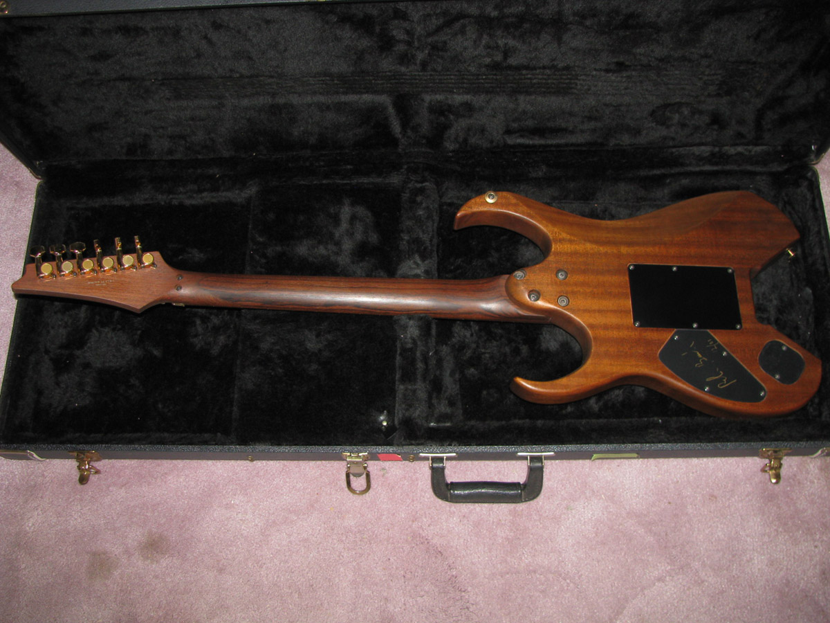 RBM400 - Quite simply the cleanest 400 I've seen, and I sold it many years ago. Consider it a near new 400 that shows only wiping scratches on the pickguard, a few extra around the volume from use, and gold wear to the treble edge of the bridge mounting ring from bracing a pinky. There are a few tiny pimples on the trem. That is the brightest gold beehive knob I've ever seen. The only blem I could find on any of the wood is a small bruise in the trem cut near the strap pin. The Bolivian Rosewood neck is just beautiful, The 400 is the last evolution of the Bolivian guitars build only in 94, this a very early production 93 build. I always liked the passives in the 400 far more than the EMG's in the vaunted M2 with the Koa, If you've been looking for a 400 you could not find a better one for sale probably ever. This Bolivian has a natural very optimal neck profile which is not always the case with the Bolivians. This is a good one in every way. In a very clean RG50, which was actually the correct case for the model and what almost all are found in, even though they fit into pink lined very well. Nothing in the well but a trem bar and case keys. Fred's identification tape next to the handle, but left blank. These can be removed with GooGone and patience.**$3500**