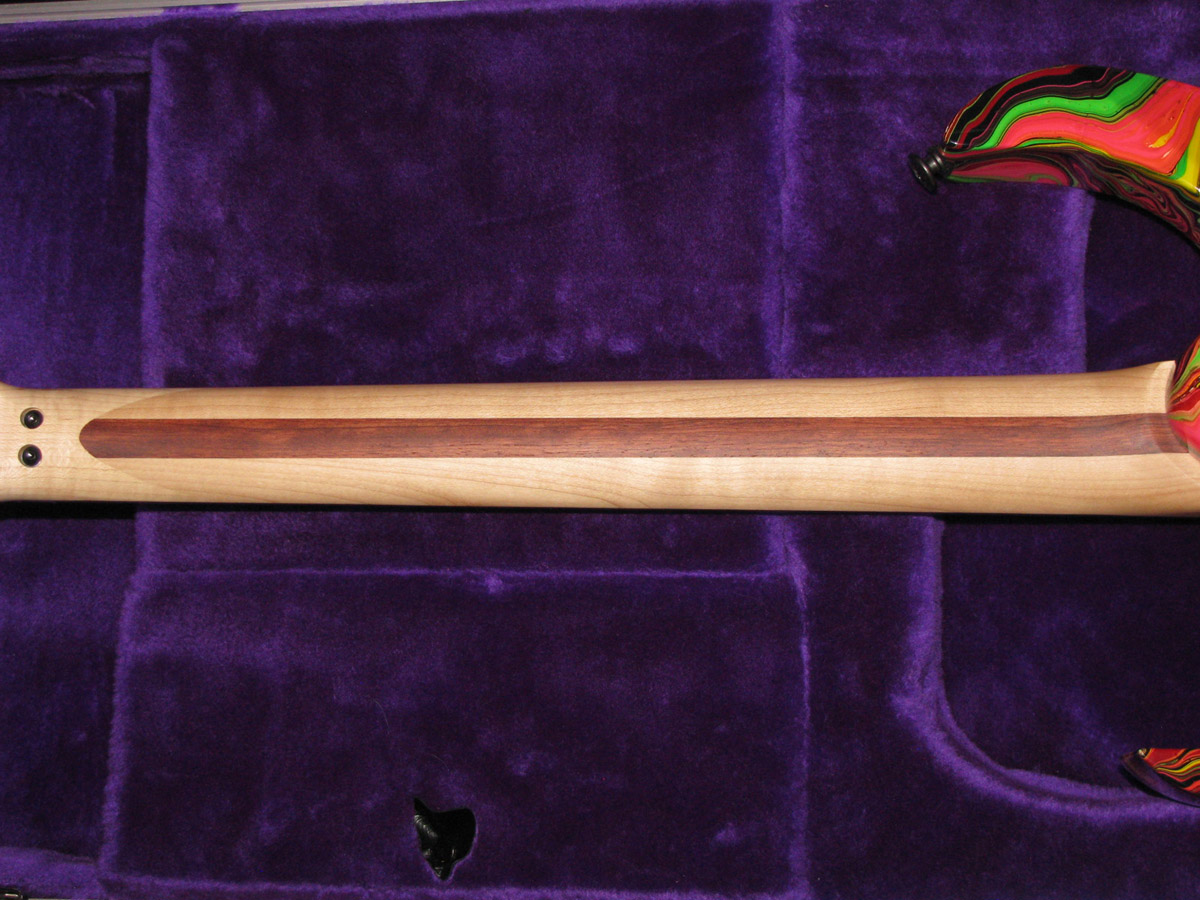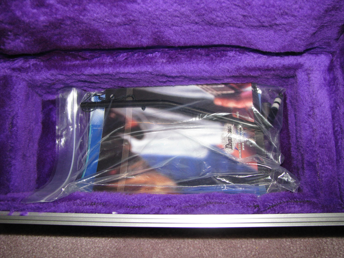 VAI2KDNA #14 - Near Dead Mint with a deep rich palate and beautiful pattern. This guitar was chosen 7th in my original pickoff and sold to Fred at some point before the 2003 shot above where it is at the bottom of the second row. There is just enough light swirling on the pickguard to know if was carefully played a few times, and a few faint handling scratches, but there is an odd fog spot on the bass side edge of the neck pocket that extends slightly beyond an odd circle crack. I have no doubt this was caused when the neck was changed by HUSA under Warranty for a crack in the bubinga of the original neck. Otherwise the guitar is Dead Mint. This was a HUSA guitar and has all paperwork, Warranty card, tools, bag, and Cert, but is in the World Flight case Fred preferred over the US cases, which has a few scuffs on the top and back sides. The identification tape has fallen off the plastic cover over the plaque leaving some tape residue. This guitar does have its original shipping box with a little deterioration to the label but otherwise very clean. The neck serial number no longer matching the serial on the box since the neck was changed under warranty.**7250**