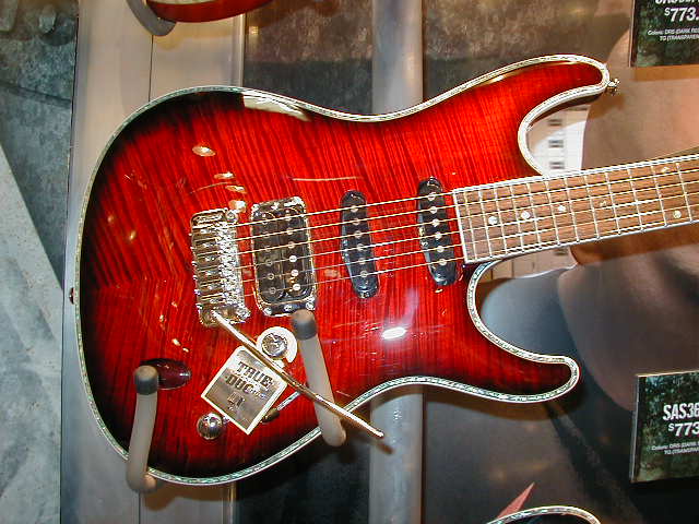SAS36FMDRS - The SA series gets a mate to the SZ720. Mahogany body with abalone purfled flame maple top, 3 piece SA set neck, Medium frets on a bound rosewood fretboard with matched flame headstock, SAT Pro trem, IBZ AHS1 neck, IBZ AHS2 mid, and IBZ True-Duo bridge pickups, available in DRS [Dark Red Sunburst shown here], and TG [Trans Gray]. $733.32 List price. Case is the M100C at $139.99.