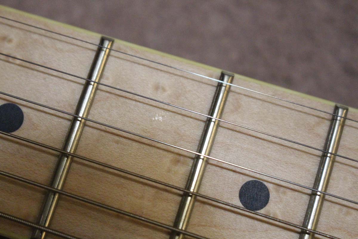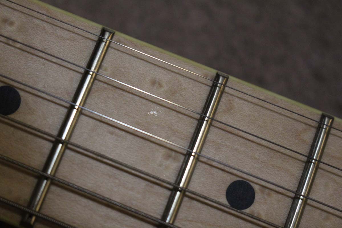 A TOUCH OF FRET GLUE ON THE FRETBOARD