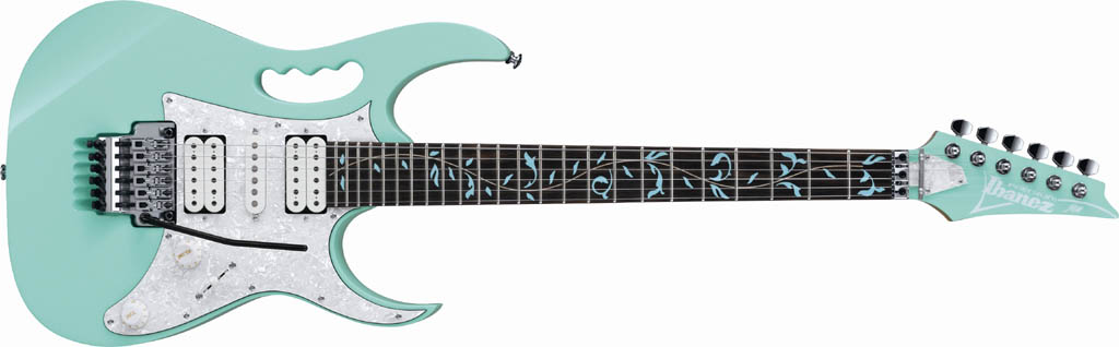 JEM70SFG - The new workhorse JEM that will fit into most any budget. It may be on a budget but it comes with all the goods. Original Edge trem for rock solid tuning, Dimarzio Evolutions for the right tone, and Premium fretwork with the full vine inlay. Don't let it's Indonesian heritage fool you, these Premiums are winning over fans the world over for their high end features on a mid range budget at half the cost of it's Japanese big brothers.