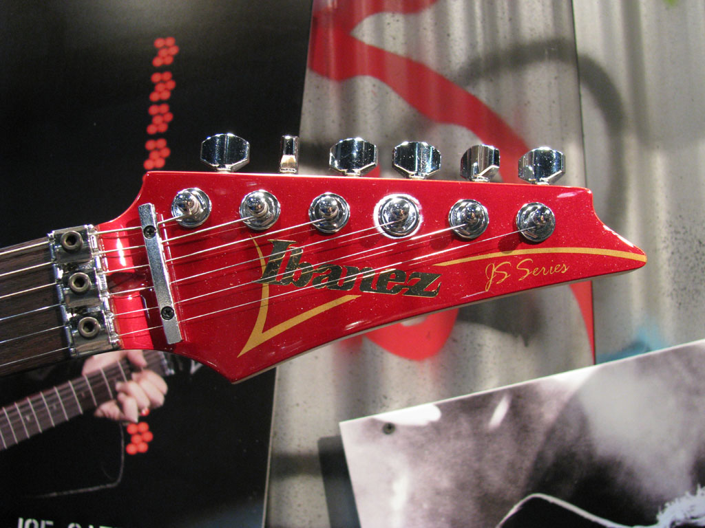 JS1200CA - EDGE PRO BRIDGE - CLEARANCE - Joe Satriani got it right 15 years ago. Joe designed a guitar with superb ergonomics, drop dead looks, and incredible tone, a rare combination in the modern world. You don't just play a JS, you wear it like a comfortable T-Shirt. Combine that with coil tap-able Dimarzio's in a dual humbucker layout and you also have one of the most sonically versatile weapons available. The fretboard has a 250mm [about 9 1/2"] radius for a more traditional feel making this a true Super Strat. The Candy Apple finish became an immediate favorite with strong sales from the very first year. Joe has kept a 1200 in his touring rig and plays most of his current live sets on a 1200. He has also had all his stage guitars fitted with the PAF Joe found in the 1200 [but they also have the Mo Joe]. The 1200 remains my pick for the sweetest JS since the TB. Continuing the stampeding return of the Original EDGE, all the Japanese JS's will get the Original EDGE. This will be a running change with the new models expected in sometime between now and Spring. Guitars can be converted to Lo Pro Edge for an upcharge if the customer desires. 2010 - The heel width [last fret] returns to the old 56mm standard. 2005-2009 had seen the heel width at 58mm. This is a 2009 and 58mm heel width.