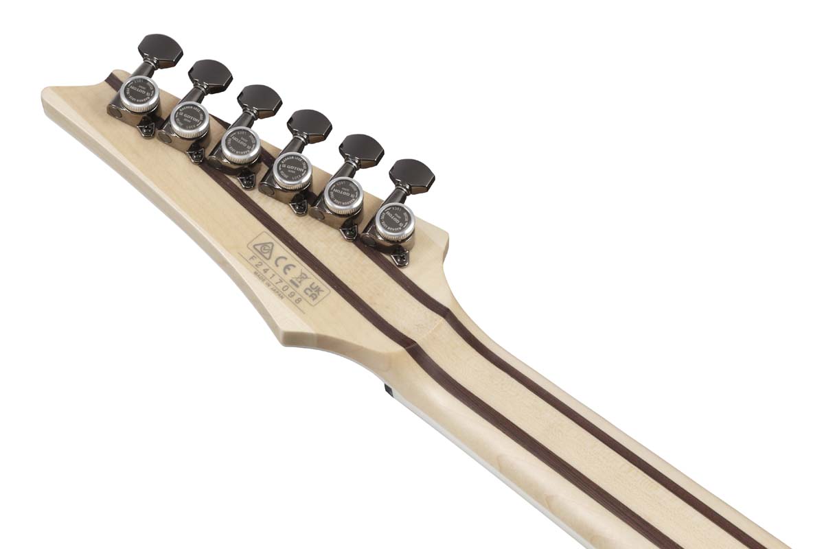 | RG5121R The RG is the most recognizable and distinctive guitar in the Ibanez line. Three decades of metal have forged this high-performance machine, honing it for both speed and strength. Whether you favor a hardtail (fixed) bridge or our industry-leading locking tremolo system, the RG is a precision instrument. - Prestige - There are three principles behind the Ibanez Prestige line: Precision, Performance, and Playability. Prestige combines high-tech manufacturing techniques with old-world Japanese craftsmanship, in order to achieve true innovation in design and construction. The series incorporates ideas and suggestions from musicians from around the world as the cornerstones of the Prestige production process. ****Product Features**** - Super Wizard HP 5pc Maple/Wenge neck The Super Wizard 5pc Maple/Wenge neck provides extra-smooth playing. - Rosewood fretboard Rosewood fretboard provides a well-balanced solid tone with a focused mid range. - Jumbo Stainless Steel frets with Prestige fret edge treatment Stainless steel frets boast excellent corrosion resistance. The wide and tall fret-type offers a quick response, good articulation when playing chords and clear tone when playing single notes. The Prestige Fret Edge Treatment guarantees effortlessly fast playing. - African Mahogany body The African Mahogany body delivers a rich mid-low end. - Fishman® Fluence™ Modern Humbucker Ceramic pickups The Fishman® Fluence™ Modern Humbucker pickups provide an aggressive tone and a powerful attack without excess noise. - Gotoh® MG-T locking machine heads The Gotoh® MG-T locking machine heads achieve incredible tuning stability, cutting down string-changing time. - Gibraltar Standard III bridge The Gibraltar Standard III bridge, featuring a redesigned baseplate and saddles, offers enhanced playing comfort while ensuring optimal string vibration transfer. - Fishman® Fluence™ Voicing switch The Voicing switch allows the pickups to switch from a modern, active high output sound to a crisp, clean and fluid sound. - Luminlay side dots The Luminlay side dot position marks make it easy for players to see fretboard position marks when performing on dark stages. ![]()