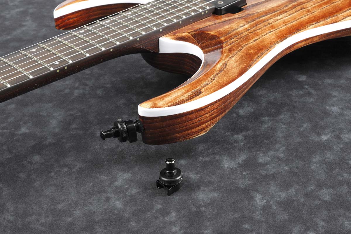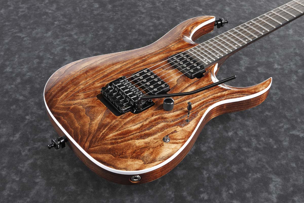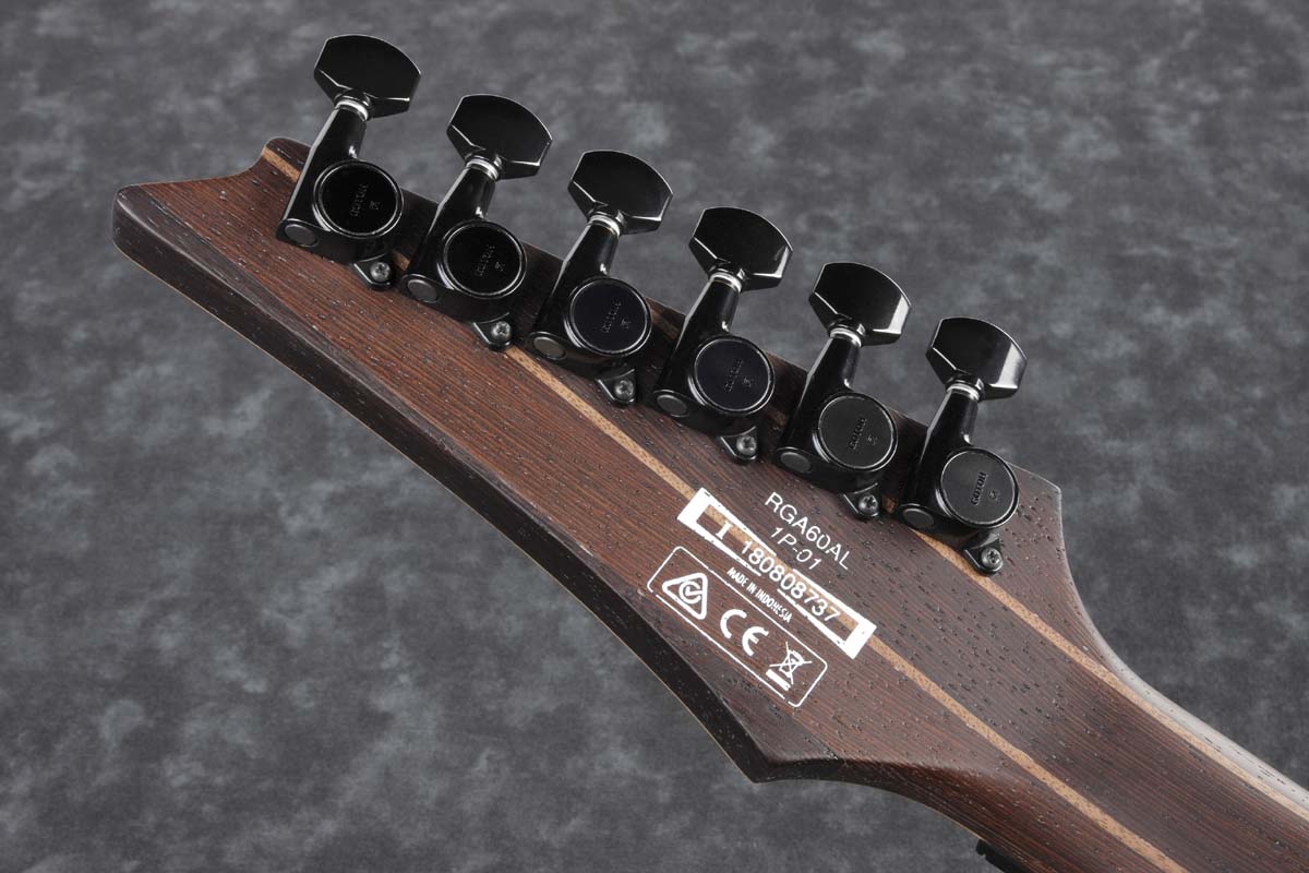 The Axion Label was made for metal, but offers even more for the adventurous players out there. The Axion Label models feature forward-looking developments in sound, playability and looks that take performances higher, deeper and heavier. Arm yourself with the Axion Label and get ready to break some new ground. The RGA60AL features a Macassar Ebony fretboard that provides a tight low end with quick response and the extremely rigid, super-thin and ultra-playable Nitro Wizard 5-piece Panga Panga/Walnut neck substantially increases sustain. The Sub Zero treated frets can stand up against the hardest riffing and string-bending. The luminescent side dot inlays make it easy for players to perform on dark stages, matching the dazzling luminescent Ibanez headstock logo. Bare Knuckle Aftermath pickups deliver a bright and wickedly expressive tone, transmitting a quick bottom-end response for picking and fast riffing along with a dynamic midrange and precise high-end articulation. The coil-tap switch unleashes the pickup’s full output (for a modern voice) or a lower output signal (for a vintage tone). The Edge-Zero II tremolo bridge provides exceptional tuning stability, precise intonation adjustment and playing comfort. Gotoh® locking tuners add tuning accuracy and allow for quick, efficient string changing and the Schaller S-Lock strap lock pins hold a strap securely but make it simple and easy to put the strap on and take off quickly. |