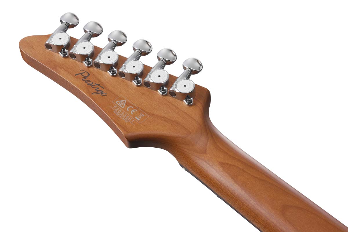 AZ2204N Taking adaptability to new extremes, the AZ series has established itself and carved out a place that spans everything from the warmest blues licks, to the most intense, shred-heavy metal riffs. Carrying this ethos forward, the AZ line embodies time-tested Ibanez innovation and player-focused features like a smooth, oval neck grip, a well-balanced asymmetrical body shape, and the neck heel allowing for unrivaled playability. - Prestige - There are three principles behind the Ibanez Prestige line: Precision, Performance, and Playability. Prestige combines high-tech manufacturing techniques with old-world Japanese craftsmanship, in order to achieve true innovation in design and construction. The series incorporates ideas and suggestions from musicians from around the world as the cornerstones of the Prestige production process. ****Product Features**** - Oval C S-TECH WOOD Roasted Maple neck The S-TECH special roasted treatment increases the wood's stability, durability, water resistance and tolerance of temperature changes. The neck is sealed with an oil finish which helps make it feel similar to a well-played guitar neck. - Rosewood fretboard Rosewood provides a well-balanced solid tone with a focused mid range. - Jumbo Stainless Steel frets with Prestige fret edge treatment Stainless steel frets boast excellent corrosion resistance. The wide and tall fret-type offers a quick response, good articulation when playing chords and clear tone when playing single notes. The Prestige Fret Edge Treatment guarantees effortlessly fast playing. - Alder body The Alder body delivers a well-balanced bright tone, enriched resonance and sustain. - Seymour Duncan® Fortuna™ S-S-H pickups Seymour Duncan® Fortuna™ Pickups feature a moderate output and natural clean voicing which accurately reflect subtle playing nuances. From treble to bass, the overall tonal balance is evenly adjusted and works well with various effect pedals. - Gotoh® Magnum Lock w/H.A.P. machine heads GOTOH® MAGNUM LOCK® machine heads have an established reputation for tuning stability. Its H. A. P® (Height Adjustable Post). system allows for the adjustment of string posts for the appropriate tension of each string. - Gotoh® T1702B The T1702B tremolo bridge provides quick response and improved articulation. The 10.5mm string spacing allows for easy picking across strings and its snap-in construction makes it easy to load a tremolo arm. The tremolo block and saddles are made of brass, facilitating better overall resonance. - dyna-MIX9 switching system with Alter Switch The dyna-MIX 9 offers nine sound variations and can switch between humbucker and single coil modes with just a flick of the mini switch. One mode even simulates a humbucking sound from the combination of two single coil pickups. - Hardshell case included Ibanez Hardshell case gives you extreme protects for your be-loved instrument. ****Special Features**** - Non-recessed bridge cavity While the AZ series features a recessed bridge cavity for fluid and dynamic tremolo action, this model has non-recessed bridge cavity. The direct contact between bridge plate and the guitar body provides better resonance and helps facilitate subtle nuances in playing dynamics. - 5 tremolo springs Five tremolo springs allow string vibration to be more efficiently transferred to the guitar body. - Compound Radius Fretboard (228mm to 305mm) Offering the best of both worlds, the digitized compound radius fretboard of the AZ-N is built to enhance both smooth chording and lead work in the upper register. - Super All Access Neck Joint The Super All Access Neck Joint increases playability and eases access to the highest frets. - Ergonomic rear body contour A shallow body back contour and a big forearm contour make the guitar body fit the player naturally, thus increasing playing comfort. The AZ body has a deep waist and different radii on each body edge curve, making it easier to play in both standing or sitting positions. ****Videos**** https://youtu.be/DirmJeyg-1w               | | | |