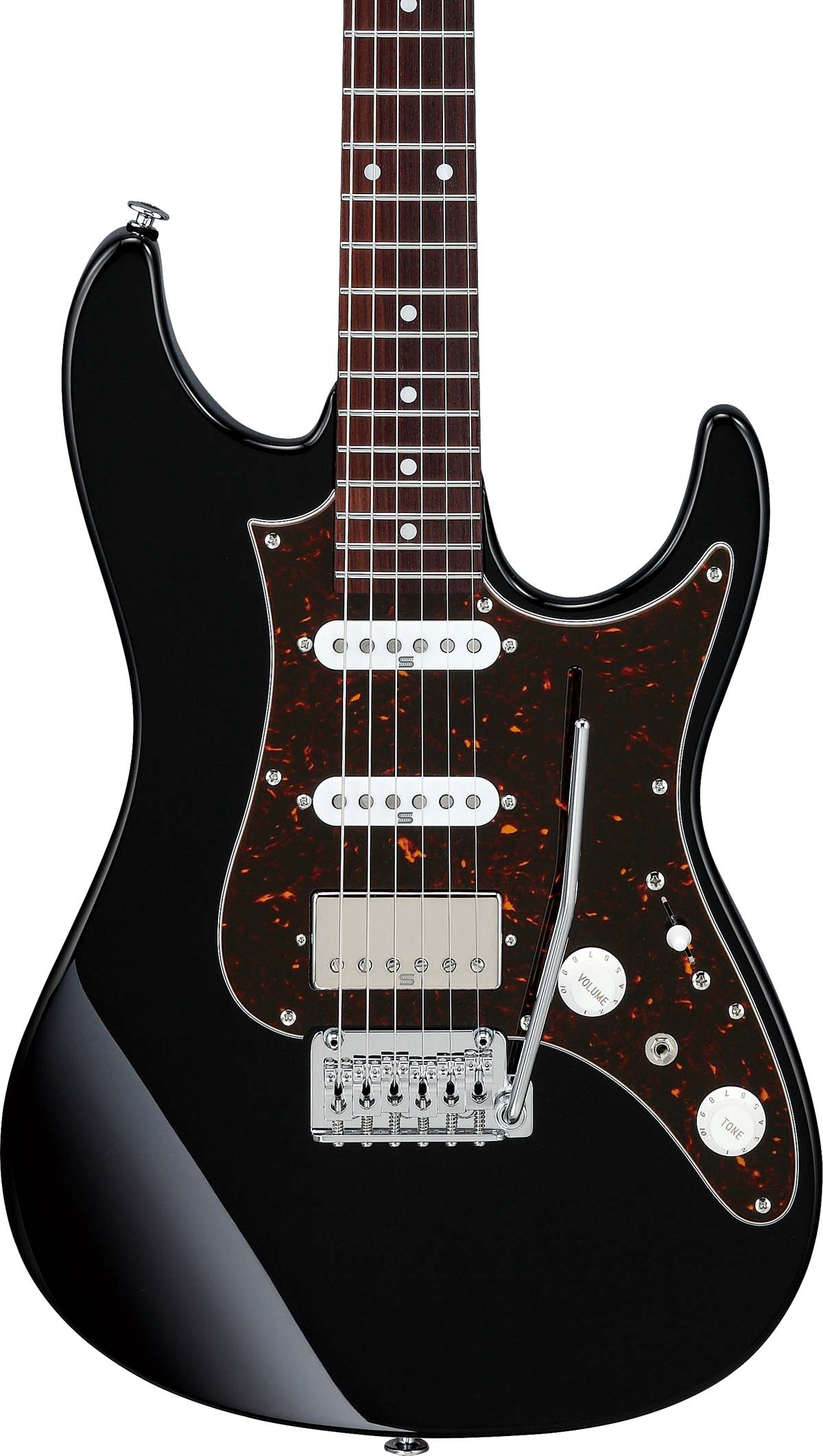 AZ2204N Taking adaptability to new extremes, the AZ series has established itself and carved out a place that spans everything from the warmest blues licks, to the most intense, shred-heavy metal riffs. Carrying this ethos forward, the AZ line embodies time-tested Ibanez innovation and player-focused features like a smooth, oval neck grip, a well-balanced asymmetrical body shape, and the neck heel allowing for unrivaled playability. - Prestige - There are three principles behind the Ibanez Prestige line: Precision, Performance, and Playability. Prestige combines high-tech manufacturing techniques with old-world Japanese craftsmanship, in order to achieve true innovation in design and construction. The series incorporates ideas and suggestions from musicians from around the world as the cornerstones of the Prestige production process. ****Product Features**** - Oval C S-TECH WOOD Roasted Maple neck The S-TECH special roasted treatment increases the wood's stability, durability, water resistance and tolerance of temperature changes. The neck is sealed with an oil finish which helps make it feel similar to a well-played guitar neck. - Rosewood fretboard Rosewood provides a well-balanced solid tone with a focused mid range. - Jumbo Stainless Steel frets with Prestige fret edge treatment Stainless steel frets boast excellent corrosion resistance. The wide and tall fret-type offers a quick response, good articulation when playing chords and clear tone when playing single notes. The Prestige Fret Edge Treatment guarantees effortlessly fast playing. - Alder body The Alder body delivers a well-balanced bright tone, enriched resonance and sustain. - Seymour Duncan® Fortuna™ S-S-H pickups Seymour Duncan® Fortuna™ Pickups feature a moderate output and natural clean voicing which accurately reflect subtle playing nuances. From treble to bass, the overall tonal balance is evenly adjusted and works well with various effect pedals. - Gotoh® Magnum Lock w/H.A.P. machine heads GOTOH® MAGNUM LOCK® machine heads have an established reputation for tuning stability. Its H. A. P® (Height Adjustable Post). system allows for the adjustment of string posts for the appropriate tension of each string. - Gotoh® T1702B The T1702B tremolo bridge provides quick response and improved articulation. The 10.5mm string spacing allows for easy picking across strings and its snap-in construction makes it easy to load a tremolo arm. The tremolo block and saddles are made of brass, facilitating better overall resonance. - dyna-MIX9 switching system with Alter Switch The dyna-MIX 9 offers nine sound variations and can switch between humbucker and single coil modes with just a flick of the mini switch. One mode even simulates a humbucking sound from the combination of two single coil pickups. - Hardshell case included Ibanez Hardshell case gives you extreme protects for your be-loved instrument. ****Special Features**** - Non-recessed bridge cavity While the AZ series features a recessed bridge cavity for fluid and dynamic tremolo action, this model has non-recessed bridge cavity. The direct contact between bridge plate and the guitar body provides better resonance and helps facilitate subtle nuances in playing dynamics. - 5 tremolo springs Five tremolo springs allow string vibration to be more efficiently transferred to the guitar body. - Compound Radius Fretboard (228mm to 305mm) Offering the best of both worlds, the digitized compound radius fretboard of the AZ-N is built to enhance both smooth chording and lead work in the upper register. - Super All Access Neck Joint The Super All Access Neck Joint increases playability and eases access to the highest frets. - Ergonomic rear body contour A shallow body back contour and a big forearm contour make the guitar body fit the player naturally, thus increasing playing comfort. The AZ body has a deep waist and different radii on each body edge curve, making it easier to play in both standing or sitting positions. ****Videos**** https://youtu.be/DirmJeyg-1w               | | | |