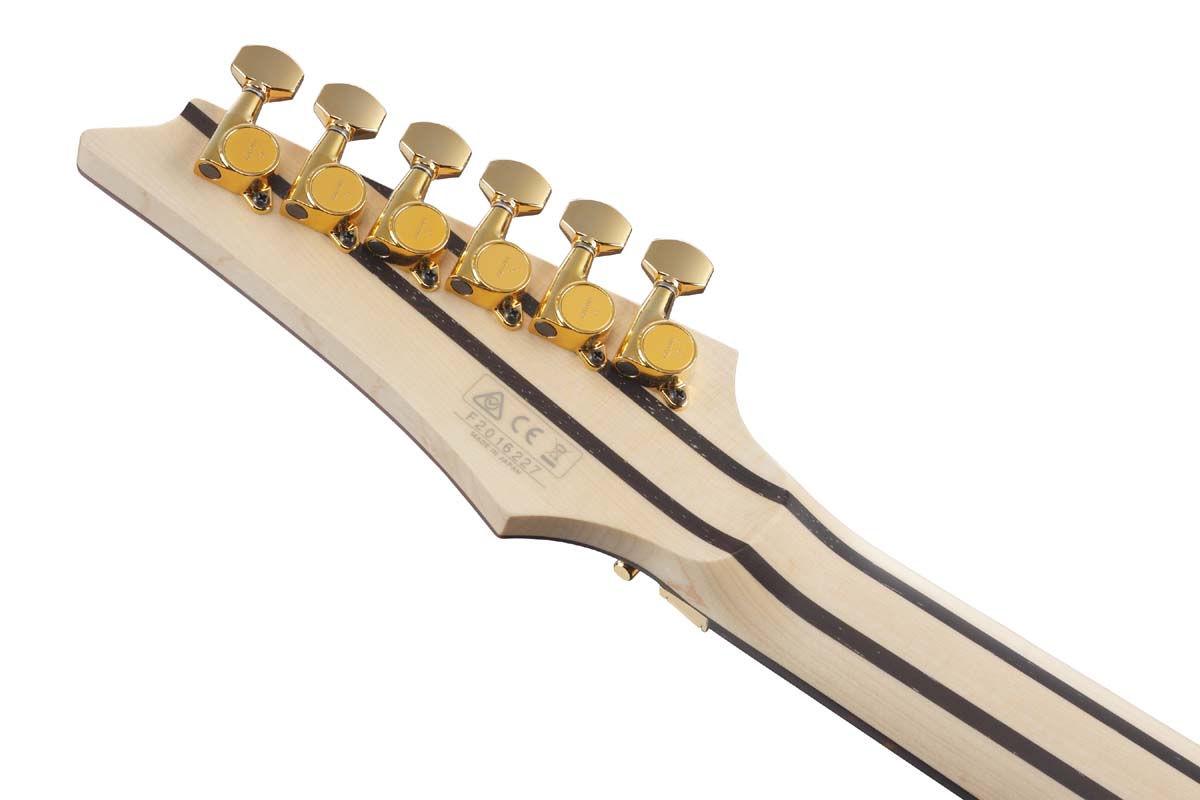 | RG5170B The RG is the most recognizable and distinctive guitar in the Ibanez line. Three decades of metal have forged this high-performance machine, honing it for both speed and strength. Whether you favor a hardtail (fixed) bridge or our industry-leading locking tremolo system, the RG is a precision instrument. - Prestige - There are three principles behind the Ibanez Prestige line: Precision, Performance, and Playability. Prestige combines high-tech manufacturing techniques with old-world Japanese craftsmanship, in order to achieve true innovation in design and construction. The series incorporates ideas and suggestions from musicians from around the world as the cornerstones of the Prestige production process. ****Product Features**** - Super Wizard HP 5pc Maple/Wenge neck The Super Wizard 5pc Maple/Wenge neck provides extra-smooth playing. - Macassar Ebony fretboard Macassar Ebony produces tight lows and mid range along with strong attack in the highs and quick response with rich sustain. - Jumbo Stainless Steel frets with Prestige fret edge treatment Stainless steel frets boast excellent corrosion resistance. The wide and tall fret-type offers a quick response, good articulation when playing chords and clear tone when playing single notes. The Prestige Fret Edge Treatment guarantees effortlessly fast playing. - Basswood body The Basswood body delivers a natural and flat tone. - Fishman® Fluence Modern Humbucker Alnico / Fluence Single Width / Fluence Modern Humbucker Ceramic pickups Fishman Fluence Modern Humbuckers deliver an aggressive tone and a powerful attack without excess noise, while the Fluence Single Width pickup offers a warm, clear tone and stunning punch, featuring the same quiet operation as the humbucker. - Gotoh® machine heads Gotoh® machine heads provide super precision, smooth feel, and minimal back lush. - Lo-Pro Edge tremolo The legendary Lo-Pro Edge bridge offers maximum playing comfort with its streamlined profile and recessed fine tuners. Locking studs contribute to tuning stability. - Fishman® Fluence Voicing switch The Voicing switch allows the pickups to switch from a modern, active high output sound to a crisp, clean and fluid sound. - Hardshell case included Ibanez Hardshell case gives you extreme protects for your be-loved instrument. |