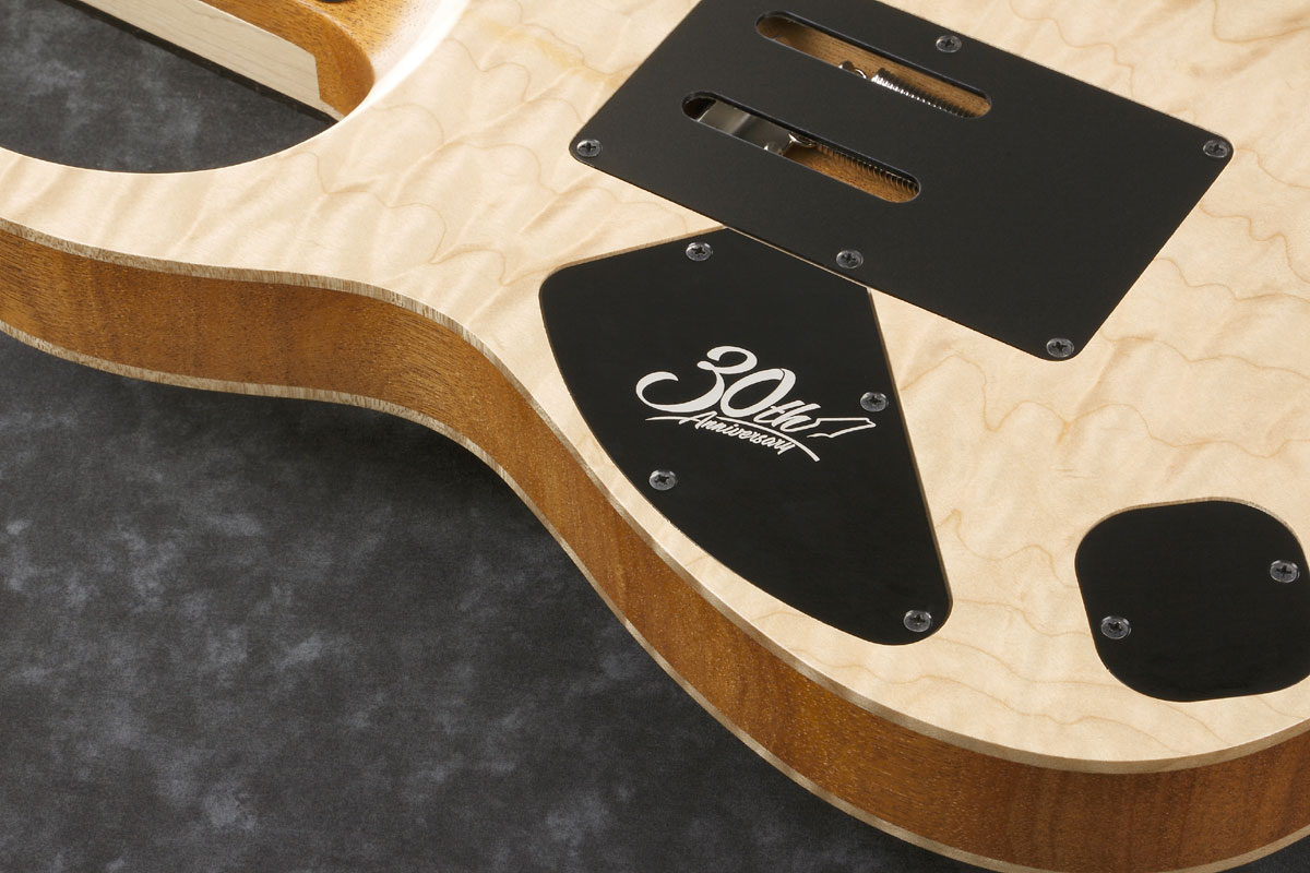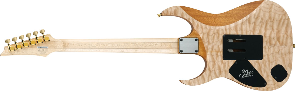 RG30JCLTD - Ibanez celebrates the 30th Anniversary of the RG with a Limited J Custom. I believe we are going to see more RG30th, possibly Prestige to Premium, when asked they replied "i2017 will be a long year", only time will tell. But the JC30th will be a 4mm AAAAA quilted top and back over a mahogany body. Very Limited as there was only 1 available per rep territory [with warehouses, ?, I'll get an official number soon]