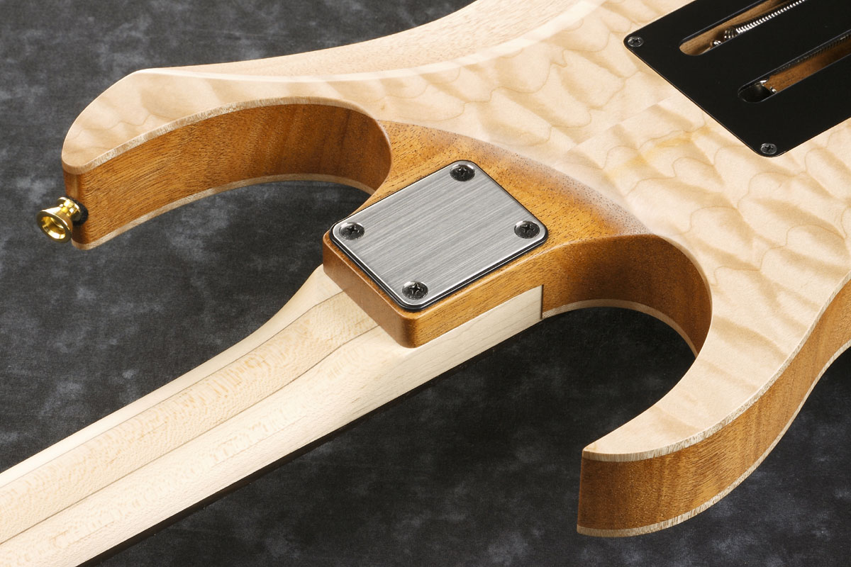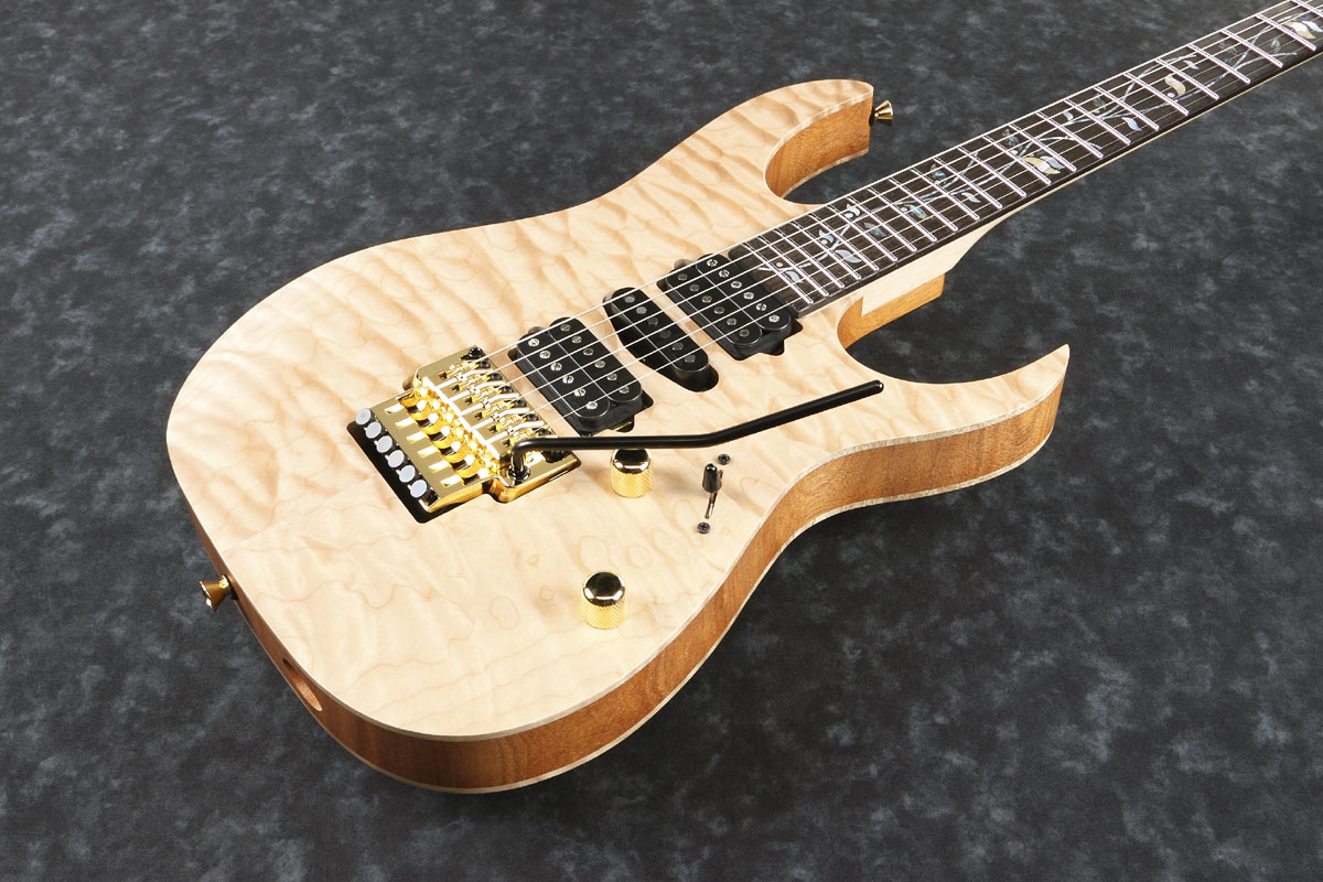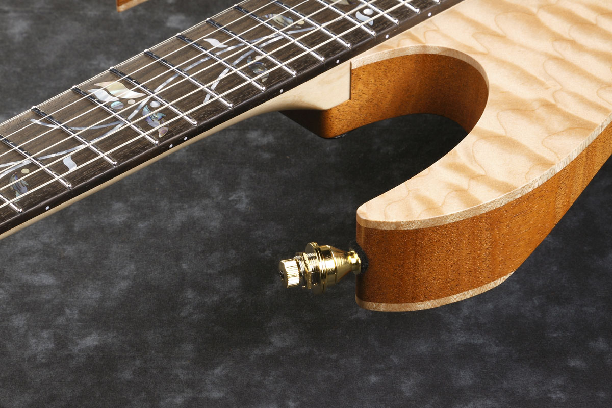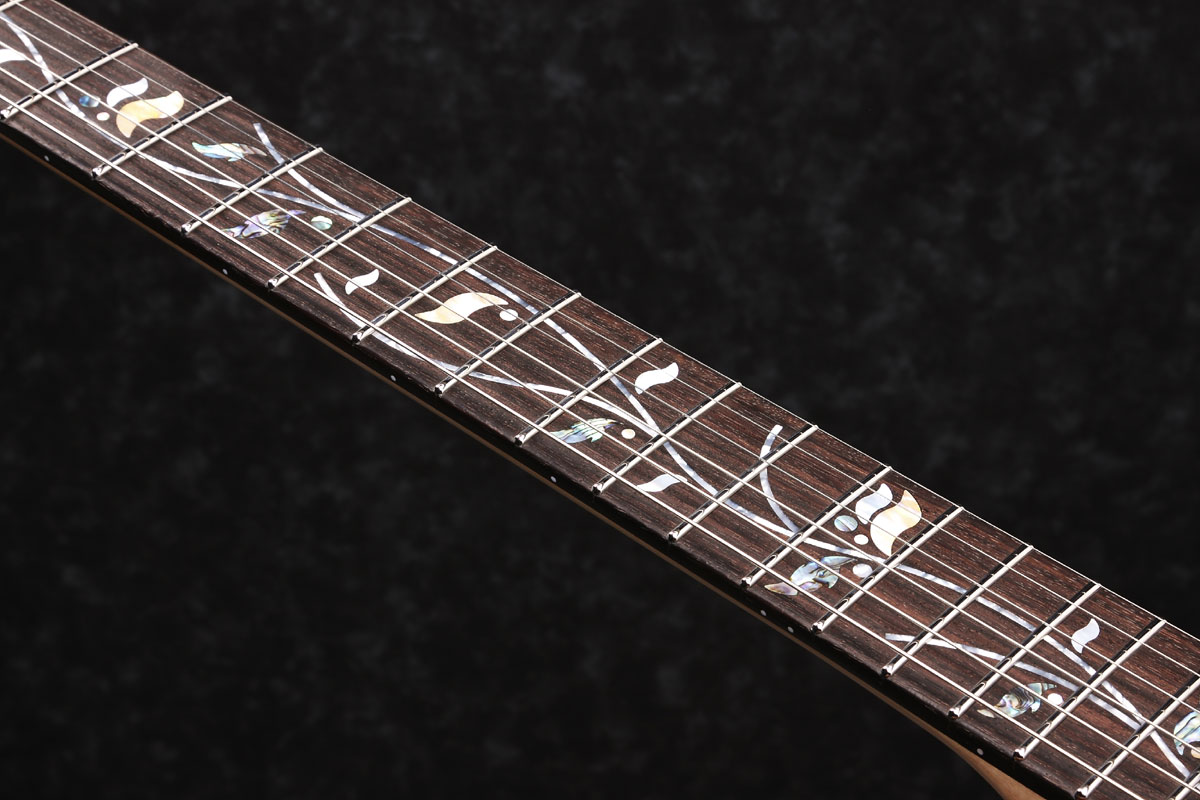 | Originally released in 1987, the RG series is having its 30-year anniversary in 2017. Throughout the past 30 years, Ibanez has been improving and developing the RG series by closely following market requirements and opinions from various artists and valued customers. RG is now the most recognizable and distinctive guitar series of Ibanez. Ibanez is pleased to show its gratitude to its fans and celebrate RG’s 30th anniversary. The j.custom RG30JCLTD is from the top-grade series of Ibanez guitars made in Japan. It is made with the ongoing Ibanez pursuit of top-level quality design, sound, raw materials, and craftsmanship. The body is made of Mahogany and has a superior warm tone with rich resonance. It is laminated with a stunning Quilted Maple on the top and back. The Tree of Life inlay on the selected Rosewood fretboard adds to the model’s gorgeous look. The Super Wizard 5pc Maple/Walnut neck features a slim grip shape for fast performance, and it also has KTS™ TITANIUM rods for extreme stability and resonance. The RG30JCLTD comes with Stainless Steel frets known for their bright tone and player-friendly features, such as long durability. The “Velvetouch” neck back finish and the j.custom fret edge treatment allow “just right” feel and smooth playability. The DiMarzio® Air Norton™, True Velvet™, and Tone Zone® pickups offer depth, warmth, and rich dynamics when combined with the 5-way pickup switch. The Lo-Pro Edge bridge offers maximum playing comfort with its streamlined profile and recessed fine tuners. Locking studs contribute to tuning stability. A hardshell case is included. |