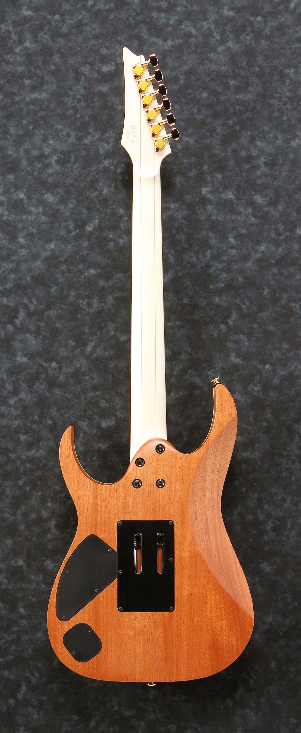 RG652BGNTF - Ibanez continues to add new models into the 652 line, this one with mahogany body and burl mahogany top finished off with gold hardware.